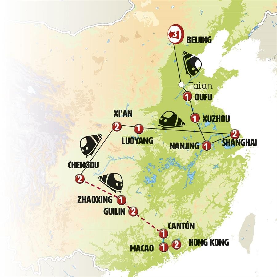 Tras el desayuno traslado a la estación de tren, tomamos uno de los modernísimos trenes de alta velocidad de China. A 300 km/hora, en dos horas llegamos a TAIAN, al pie del monte Taishan, considerada la montaña más sagrada de China. Visitamos el DAI temple, magnifico complejo de templos Taoístas del siglo XI, desde aquí se inicia la ruta de los peregrinos. Almuerzo incluido. Tras ello incluiremos el teleférico que asciende a las “Puertas del cielo” de la montaña sagrada… la última fase hay que hacerla caminando subiendo su empinada escalera entre cientos de peregrinos. Al final de la tarde, en nuestro autobús viajaremos a QUFU, la ciudad de Confucio.