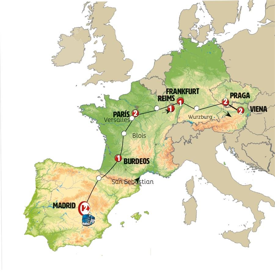 Salimos temprano de MADRID, pasos de montaña, tierras de Castilla. Hermosos paisajes en el País Vasco. SAN SEBASTIÁN, llegada a la hora del almuerzo. Tiempo para almorzar y pasear por el casco histórico o por la hermosa playa de la Concha. Continuación de ruta hacia FRANCIA. BURDEOS, llegada al final de la tarde. Sugerimos un paseo por el centro de esta ciudad declarada Patrimonio de la UNESCO.
