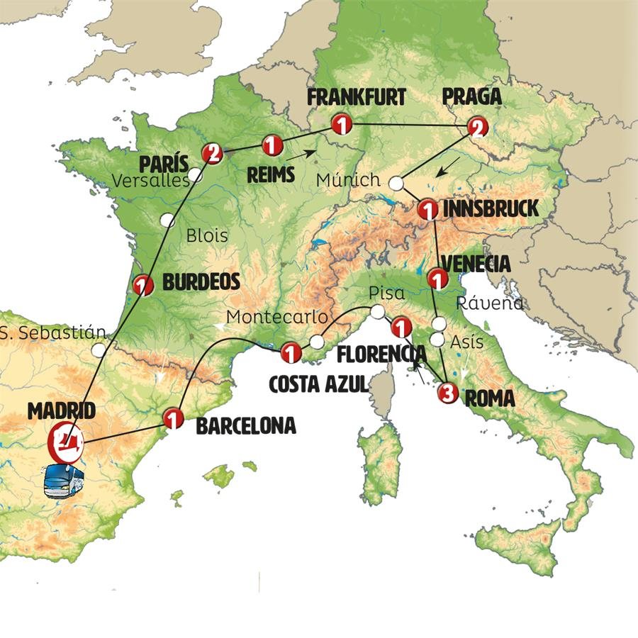 Salimos temprano de Madrid, pasos de montaña, tierras de Castilla. Hermosos paisajes en el País Vasco. SAN SEBASTIÁN, llegada a la hora del almuerzo. Tiempo para almorzar y pasear por el casco histórico o por la hermosa playa de la Concha. Continuación de ruta hacia Francia. BURDEOS, llegada al final de la tarde. Sugerimos un paseo por el centro de esta ciudad declarada Patrimonio de la UNESCO.