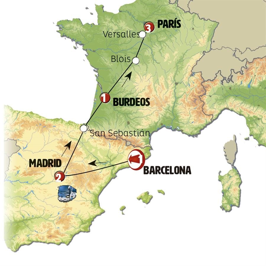 Salimos temprano de MADRID, pasos de montaña, tierras de Castilla. Hermosos paisajes en el País Vasco. SAN SEBASTIÁN, llegada a la hora del almuerzo. Tiempo para almorzar y pasear por el casco histórico o por la hermosa playa de la Concha. Continuación de ruta hacia FRANCIA. BURDEOS, llegada al final de la tarde. Sugerimos un paseo por el centro de esta ciudad declarada Patrimonio de la UNESCO.