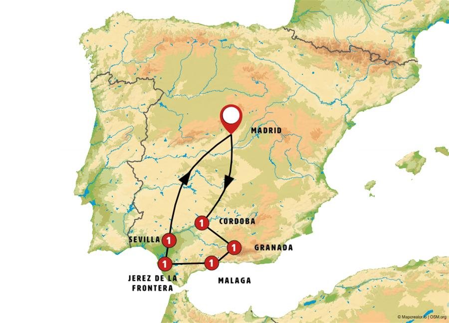 Hoy disfrutaremos de una de las etapas más hermosas del viaje, recorriendo los Pueblos Blancos y las serranías andaluzas. Partimos hacia PUERTO BANÚS en Marbella, uno de los puertos deportivos más lujosos de España, famoso por sus yates y boutiques de alta moda. Tras un paseo, seguimos hacia SETENIL DE LAS BODEGAS, espectacular pueblo blanco con casas incrustadas en la roca, y luego a RONDA, ciudad pintoresca situada sobre el desfiladero del Tajo. Almuerzo típico incluido y tiempo para un paseo antes de visitar la plaza de toros, una de las más antiguas y monumentales de España (entrada incluida). Llegada a JEREZ DE LA FRONTERA donde tendremos tiempo para pasear por el centro histórico y disfrutar de tapas en los "tabancos".