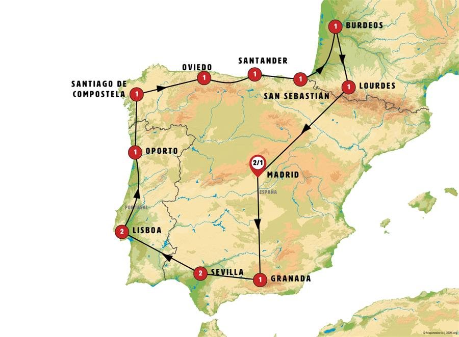 Salida temprano de Lourdes. Hoy atravesamos la cordillera de los Pirineos entre altas cumbres con muy hermosos paisajes. Entrando en España, pararemos a tomar un café en SALLENT DE GÁLLEGO, pueblo histórico de montaña con su iglesia gótica y su puente de piedra medieval. Seguimos a ZARAGOZA, la activa capital de Aragón. Tiempo para almorzar y conocer su barrio histórico y descubrir la gran Plaza del Pilar, con la catedral y la basílica donde se encuentra la venerada Virgen del Pilar. Continuación hacia MADRID. Llegada sobre las 21.00 h.