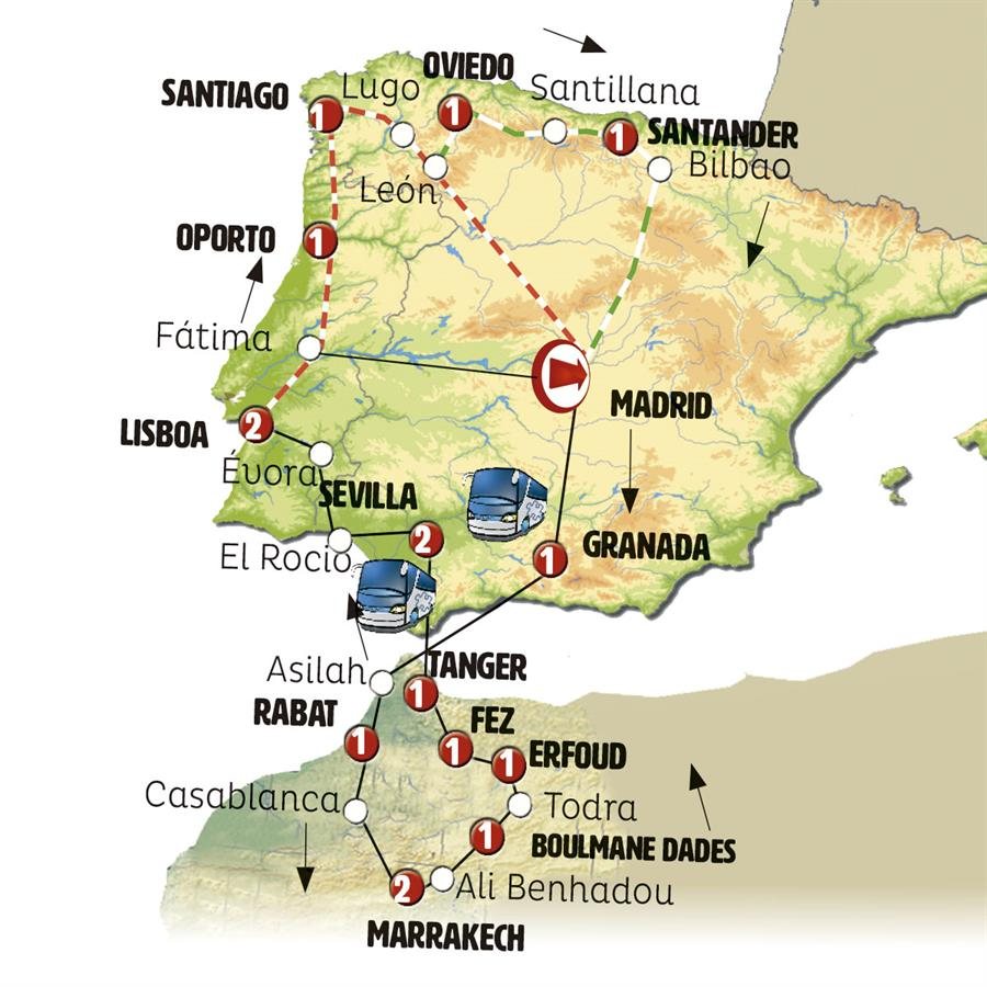 Viajamos siguiendo el Camino de Santiago hacia Castilla. En LUGO tenemos tiempo de conocer su centro histórico y las murallas romanas, Patrimonio Mundial de la UNESCO. En nuestra ruta hacemos una parada en O CEBREIRO, pequeña aldea gallega de piedra. Llegada a LEÓN a la hora del almuerzo. Tiempo para visitar la catedral gótica con sus vidrieras y pasear por el centro de esta hermosa ciudad histórica. Sobre las 17:00 h salimos de León hacia MADRID, llegando sobre las 20.30 h.Nota: En ocasiones el viaje de León a Madrid se efectúa con muy pocos participantes, pudiendo ser efectuado en tren, autocar de línea regular o mini-van.