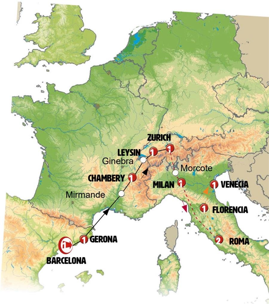 Viajamos a SUIZA. GINEBRA, llegada. Con nuestro guía iremos al Palacio de las Naciones (sede de las Naciones Unidas en Europa) y al bonito Jardín Inglés con su reloj de flores y admiraremos el “Jet d’Eau”, la fuente más alta de Europa. Continuación a la pintoresca población amurallada de GRUYERES, conocida mundialmente por su queso. Muy próximos se encuentran algunas de los principales fabricantes de Chocolate de Suiza (NESTLE entre otros), visitamos la fábrica de chocolate Cailler, dulce degustación incluida!. Seguimos por pequeñas carreteras entre bucólicos paisajes de montañas y pueblos muy pintorescos de madera hasta el Castillo de CHILLON, construido en las aguas del lago Leman. Entrada incluida a este fantástico castillo medieval. Llegada a media tarde a LEYSIN bonita población vacacional con espectaculares vistas a la llanura del Ródano y del Mont Blanc, conocida por su estación de deportes de invierno o sus posibilidades para hacer senderismo. Cena incluida.Nota: en algunas ocasiones, el alojamiento se dará en alguna otra población Suiza en el corazón de los Alpes (normalmente Matigny).