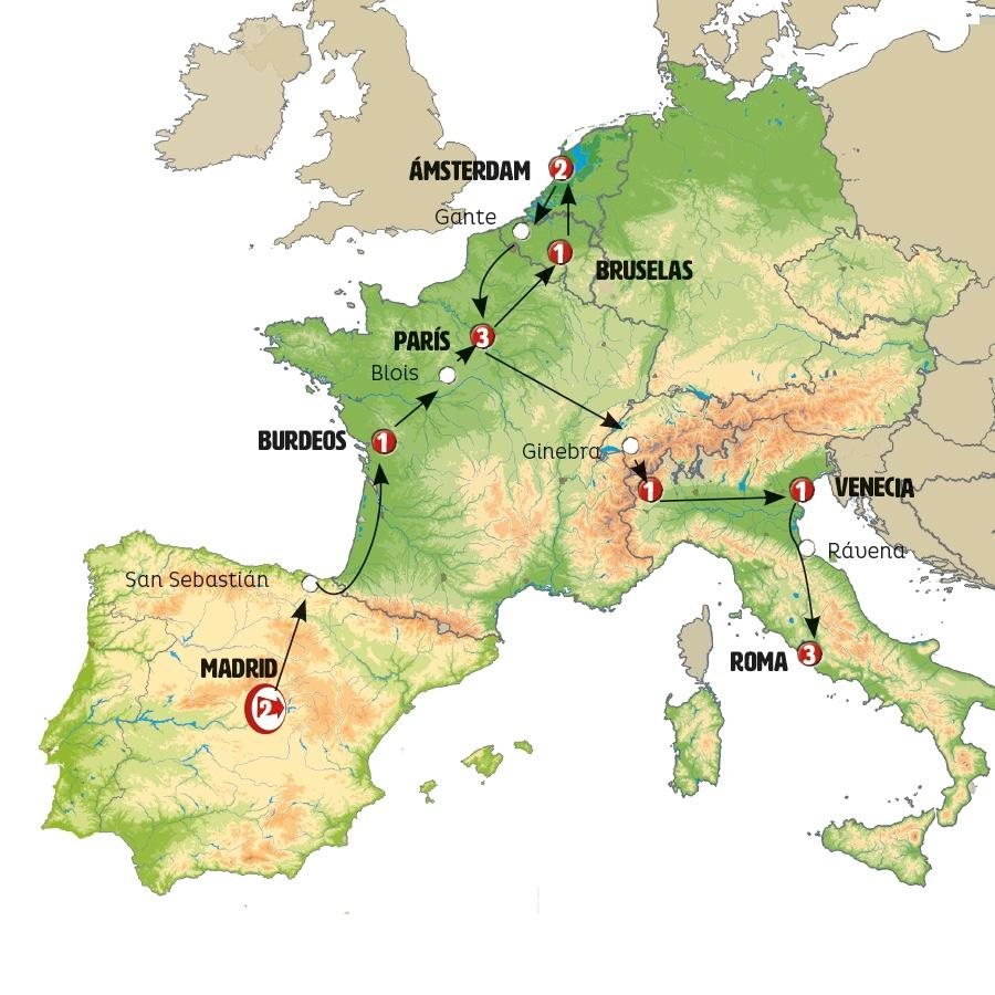 Salimos temprano de MADRID, pasos de montaña, tierras de Castilla. Hermosos paisajes en el País Vasco. SAN SEBASTIÁN, llegada a la hora del almuerzo. Tiempo para almorzar y pasear por el casco histórico o por la hermosa playa de la Concha. Continuación de ruta hacia FRANCIA. BURDEOS, llegada al final de la tarde. Sugerimos un paseo por el centro de esta ciudad declarada Patrimonio de la UNESCO.