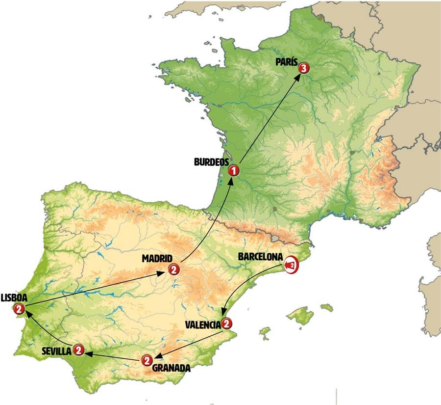 Salimos temprano de MADRID, pasos de montaña, tierras de Castilla. Hermosos paisajes en el País Vasco. SAN SEBASTIÁN, llegada a la hora del almuerzo. Tiempo para almorzar y pasear por el casco histórico o por la hermosa playa de la Concha. Continuación de ruta hacia FRANCIA. BURDEOS, llegada al final de la tarde. Sugerimos un paseo por el centro de esta ciudad declarada Patrimonio de la UNESCO.