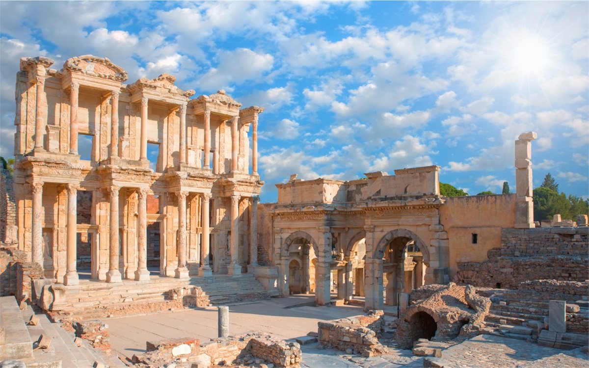 Salida hacia Efeso, la ciudad clásica mejor conservada de Turquía construida en el año 1.000 a.C (los restos que vemos hoy son del siglo IV a.C) donde destacaremos: la Biblioteca de Celso, el templo de Adriano y su gran teatro. A continuación haremos una parada en un local de desfiles y venta de prendas de piel. Más tarde, salida hacia la Pamukkale, o “castillo de algodón”, pequeña localidad famosa por sus piscinas de travertino de color blanco petrificadas y formadas por la cal contenida en el agua de los manantiales termales que emanan en la zona. Llegada y visita a Hierápolis, antigua ciudad balnearia fundada alrededor del año 190 a.C. por el rey de Pérgamo prosperando en gran medida durante la época romana. Fue levantada en la parte superior de las piscinas con un bello teatro y gran necrópolis. Cena y alojamiento.