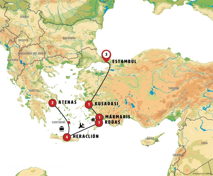 Traslado a primera hora al puerto. Embarcamos en un ferry rápido hacia la isla de SANTORINI, llegada entre las 09.00 hrs y las 10.00 hrs.- en autobús , entre bellísimos paisajes vamos a OIA, sin duda la más espectacular población de la isla, callecitas blancas llenas de vida, inmensas vistas sobre acantilados, restos de castillo y molinos de viento. Tiempo para pasear y almorzar. Tras ello conocemos THIRA, la capital de la isla; los que lo deseen pueden bajar en teleférico o burro al puerto a donde llegan los cruceros. Continuación posteriormente al puerto de ferris para embarcar en ferry rápido, con salida sobre las 15.30 hrs. Llegada a ATENAS a medianoche.-Nota muy importante: De noviembre a mediados de abril NO VISITAREMOS LA ISLA DE SANTORINI por no operar el ferry rápido de Heraclión a Santorini. En ese periodo realizaremos en avión el trayecto de Heraclión a Atenas.