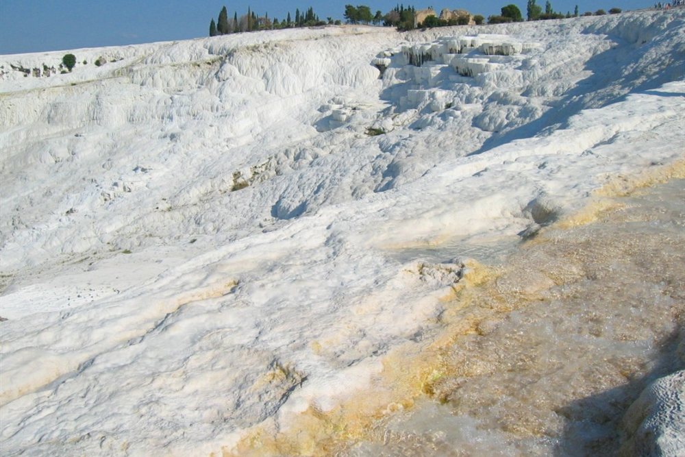 Salida hacia Éfeso, la ciudad clásica mejor conservada de Turquía, construida en el año 1000 a. C. (los restos que vemos hoy son del siglo IV a.C.). Destacamos la Biblioteca de Celso, el Templo de Adriano y su Gran Teatro. A continuación, haremos una parada en un local de desfiles y ropa de piel. Salida hacia Pamukkale o "castillo de algodón", pequeña localidad famosa por sus piscinas de travertino de color blanco, petrifiadas y formadas por la cal contenida en el agua de los manantiales termanles que emanan de la zona. Llegada y visita a Hierápolis, antigua ciudad balenaria fundada alrededor del año 190 a.C. por el rey de Pérgamo, prosperó en gran medida durante la época romana. Fue levantada en la parte superior de las piscinas, con un bello teatro y gran necrópolis. Cena y alojamiento.