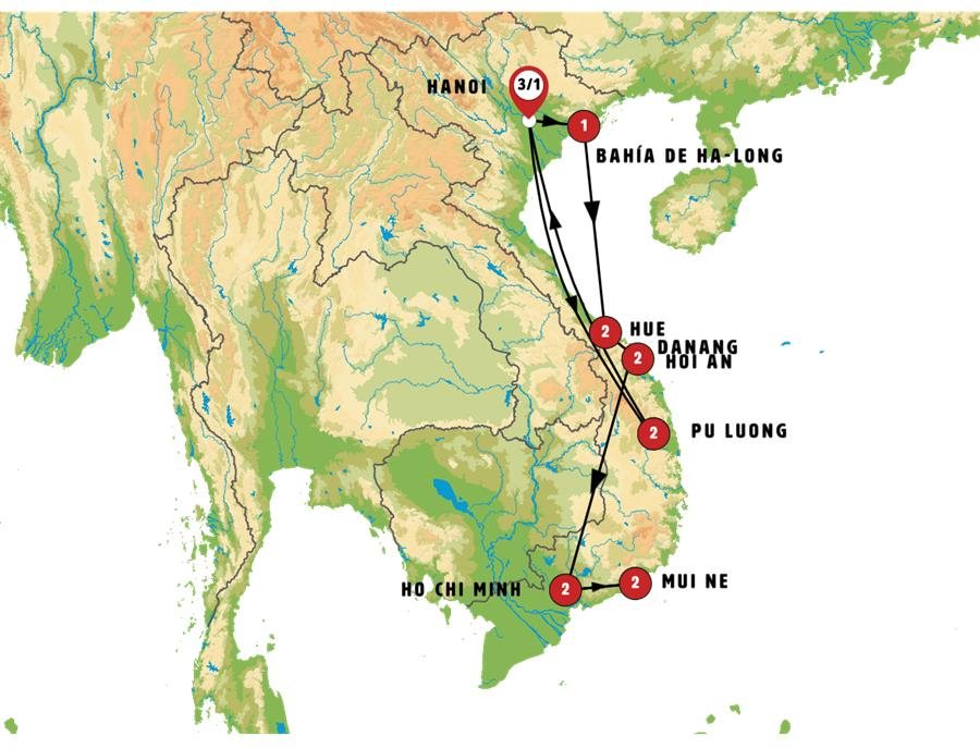 Desayuno. Salida por carretera atravesando bonitos paisajes hacia la provincia de Ninh Binh, a 110 kms de Hanoi. Una vez allí, en Tam Coc, embarcaremos en un pequeño bote de remos para recorrer un inolvidable paisaje donde descubriremos las aldeas locales, espectaculares cuevas e interminables paisajes que quedarán grabados en la retina de los viajeros. A continuación, visitaremos la pagoda de Bich Dong (1428), construida a los pies de una montaña y desde la que se puede acceder a una cueva. Este lugar recibió el apelativo de “La segunda cueva más hermosa de Vietnam” por un antiguo rey. Almuerzo incluido en restaurante local. Después de almorzar, nos trasladaremos por carretera a Hoa Lu, la antigua capital de Vietnam hasta el año 1010, cuando fue trasladada a Thang Long-Hanoi, dejando como recuerdo los templos a los reyes Dinh & Le. Al terminar la visita, regreso por carretera a Hanoi llegando hacia las 17.00 hrs. Alojamiento.