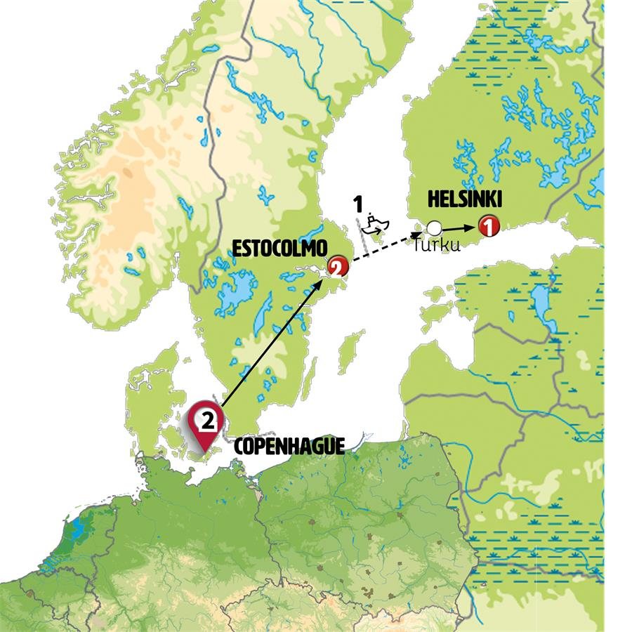Saldremos hacia HELSINGOR, la ciudad de Hamlet, en la que destaca su gran Castillo de Kronborg. Tras ello un pequeño ferry (corta travesía de 20 minutos) nos lleva a Suecia. Viajamos entre bonitos paisajes de grandes lagos y densos bosques. JONKOPING, tiempo para almorzar en esta moderna y pequeña ciudad ubicada junto a su gran lago. Continuación a VADSTENA, pintoresca población junto al lago con sus casas antiguas y su gran castillo del siglo XIV que fue convertido en monasterio. Continuación a ESTOCOLMO, llegada al final del día a la capital de Suecia, hermosa ciudad en el archipiélgao del Mar Báltico conectadas entre sí por numerosos puentes y transbordadores y conocida por su rica historia, impresionante arquitectura y su combinación de modernidad y tradición.