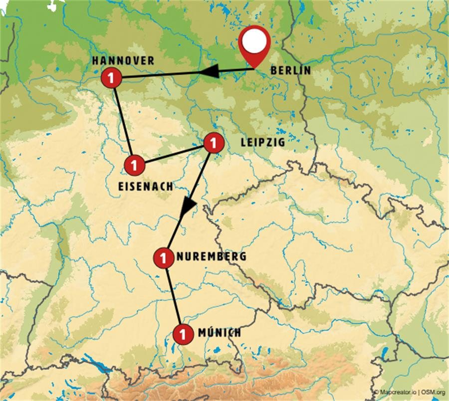 Saliendo de Leipzig, haremos una parada junto al Monumento a la Batalla de las Naciones, inaugurado en 1913 y con una altura de 91 metros, que conmemora una célebre batalla de las guerras napoleónicas. Continuamos hacia DRESDE, la capital de Sajonia, conocida por su arquitectura barroca y renacentista, sus palacios y los bonitos paseos junto al río Elba. Seguimos hacia Baviera. Llegada a BAMBERG hermosísima ciudad llena de vida; no deje de pasear por la pequeña Venecia. Continuamos a NUREMBERG, la segunda ciudad de Baviera, ciudad de larga historia donde sugerimos visitar el punto donde se encontraba el Coliseo de Hitler.