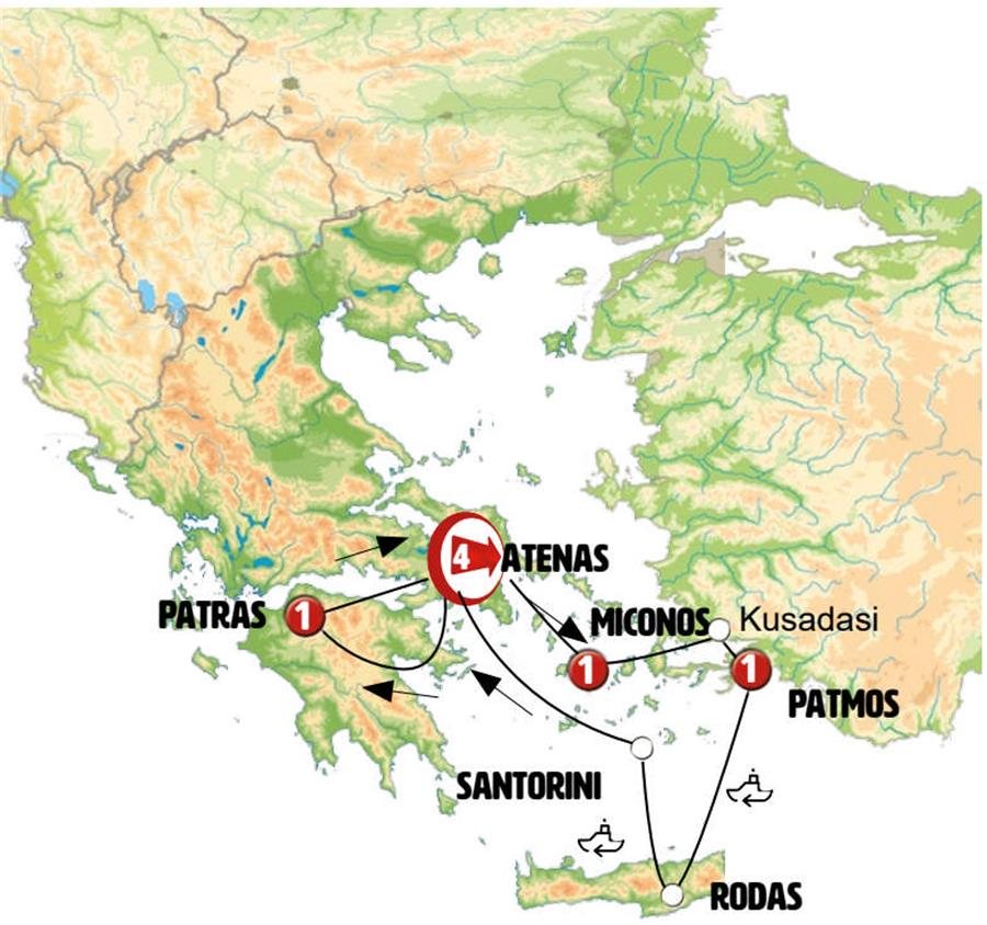 06.30 hrs.- Puerto de Lavrio. Llegada al Puerto y fin de nuestros servicios.Nota: Si usted está llegando en el ferry desde la isla de Rodas, su puerto de llegada será El Pireo. Nota: Caso de solicitar noches adicionales en Atenas, el traslado del puerto al hotel no está incluido y se facturará.