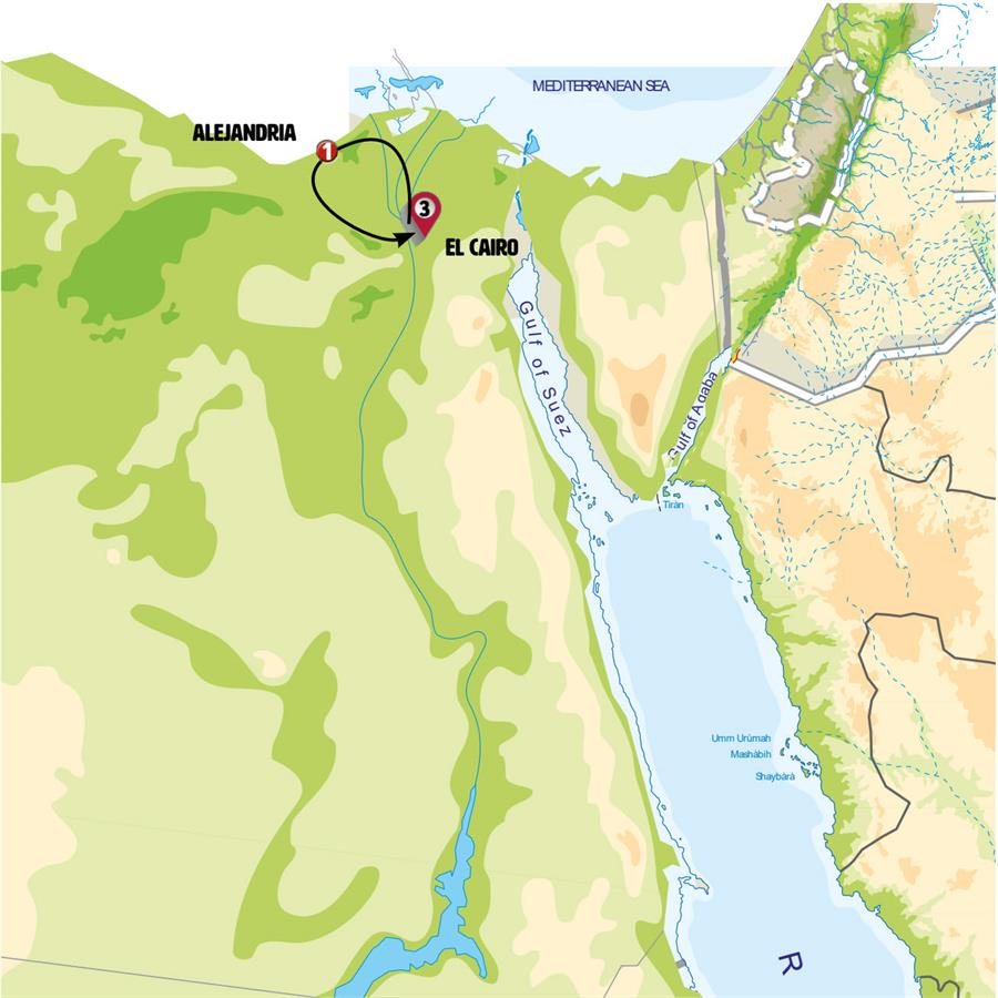 Continuamos nuestra visita de ALEJANDRIA, entrando en las impresionantes CATACUMBAS KOM ASH SHUQQAFA, el mayor cementerio romano de Egipto, sorprende la fusión del estilo faraónico y greco-romano. Desde acá iremos caminando con nuestro guía entre estrechas, muy comerciales y bulliciosas callejas hasta la COLUMNA DE POMPEYO, una inmensa columna de 30 metros de altura se levanta sobre las ruinas de un templo. Tras ello pararemos para fotografiar exteriormente la nueva BIBLIOTECA DE ALEJANDRIA, inaugurada en 2002 con una arquitectura muy moderna y que nos recuerda que esta ciudad, en el siglo III a.C . era uno de los mayores centros de difusión del conocimiento en la antigüedad. La Bibilioteca de Alejandría en aquella época custodiaba más de medio millón de royos de papiro. Almuerzo incluido y continuación de nuestra ruta hacia ROSETTA. En esta pequeña ciudad, muy próxima a la desembocadura de uno de los afluentes del Nilo se encontró la Piedra Rosetta, de poco más de un metro de altura, que fue clave para poder descifrar la escritura jeroglífica de los egipcios dado que contiene el mismo texto escrito en jeroglíficos, demótico y griego antiguo. Podremos ver una réplica de la Piedra Rosetta en la fortaleza de Rashid, ubicada a poca distancia, en un pintoresco pequeño pueblo de calles llenas de vida local y con numerosas barcas de pesca de múltiples colores en las orillas del Nilo. Tras ello conocemos Rosetta, agradable pequeña ciudad junto al Nilo, pasearemos por el centro viendo (exteriormente) las antiguas viviendas otomanas con su arquitectura de ladrillo y madera. Incluiremos también un paseo por el Nilo en barco para admirar las vistas y la actividad de las barcas pesqueras de la zona. Regresamos a EL CAIRO.- Llegada al final del día.NOTA: La fortaleza de Rashid es muy poco visitada, en ocasiones puede estar cerrada (en ese caso la veremos exteriormente y pasearemos por el pintoresco pueblo de pescadores y agricultores)
