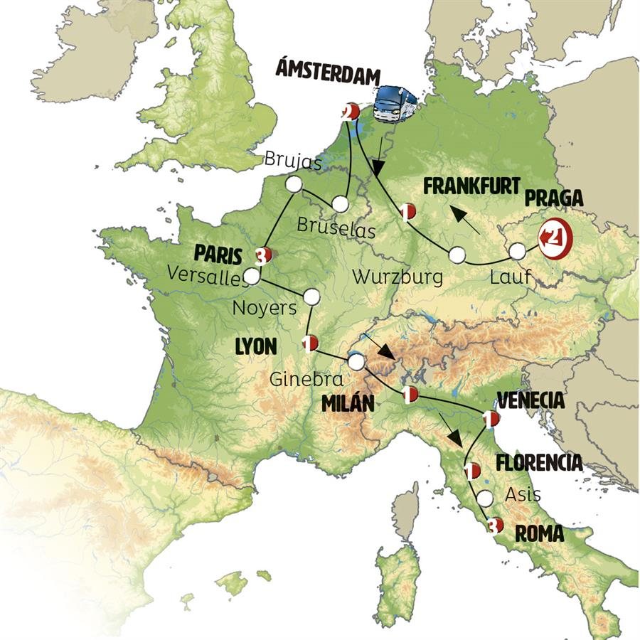 Paradas en Ruta: este circuito admite la posibilidad de que usted pueda programar una o más paradas en su viaje, en la ciudad que desee por período de 1, 3, 4 o 7 noches según circuito y fechas de salida. Es fundamental que el circuito tenga salida posterior a la fecha escogida y permita la salida deseada. El suplemento por parada efectuada es de 40 Euros/52 Dólares por persona. Si la parada se realiza para tomar otro circuito del mismo proveedor no se abonará este suplemento.