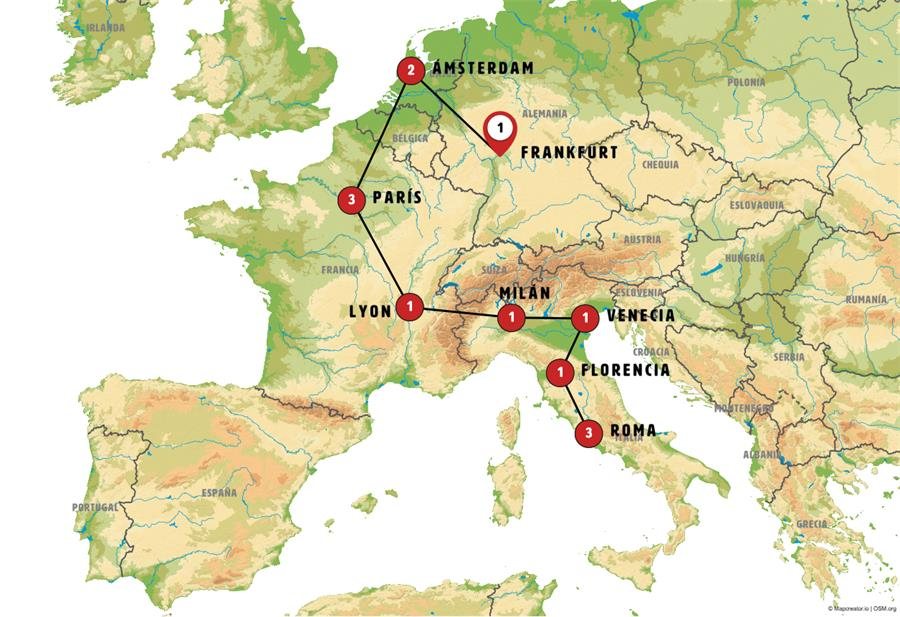Paradas en Ruta: este circuito admite la posibilidad de que usted pueda programar una o más paradas en su viaje, en la ciudad que desee por período de 1, 3, 4 o 7 noches según circuito y fechas de salida. Es fundamental que el circuito tenga salida posterior a la fecha escogida y permita la salida deseada. El suplemento por parada efectuada es de 40 Euros/52 Dólares por persona. Si la parada se realiza para tomar otro circuito del mismo proveedor no se abonará este suplemento.