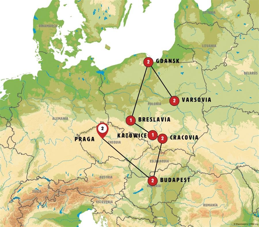 Saldremos temprano de Budapest. Hoy atravesamos Eslovaquia y conoceremos BRATISLAVA, la capital del país a orillas del Danubio. Tiempo para dar un paseo por su casco histórico al pie del imponente castillo. Tras ello continuamos hacia TRENCIN, pequeña ciudad medieval al oeste de Eslovaquia, con un impresionante castillo y un activo y pintoresco centro histórico. Tiempo para pasear y almorzar. Por la tarde continuamos nuestra ruta entre paisajes de bosques y colinas hacia Polonia. Llegada a CRACOVIA al final del día.