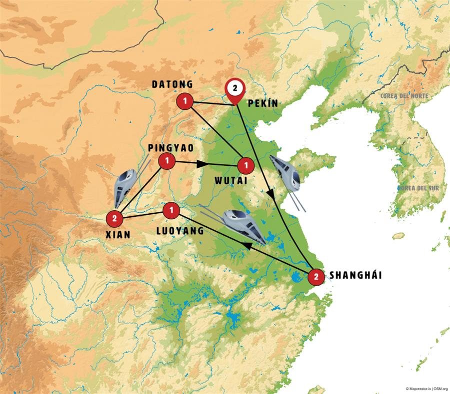A las afueras de Datong conocemos las CUEVAS DE YUNGANG, el recinto mas impresionante de arte en cuevas de China, con mas de 51 000 estatuas en sus 252 cuevas cavadas en el siglo V. Continuamos a JIMING POST, pequeña población tradicional China que conserva su vida apacible y provinciana, se creó como punto de descanso para los correos que se enviaban del emperador, protegida por potentes murallas. Continuación a PEKÍN, llegada a media tarde.Fin de nuestros servicios. Verifique la hora de su vuelo para ver si necesitará una noche adicional. Traslado de salida al aeropuerto no incluido; nuestro guía le aconsejará sobre el mejor transporte público para su viaje.