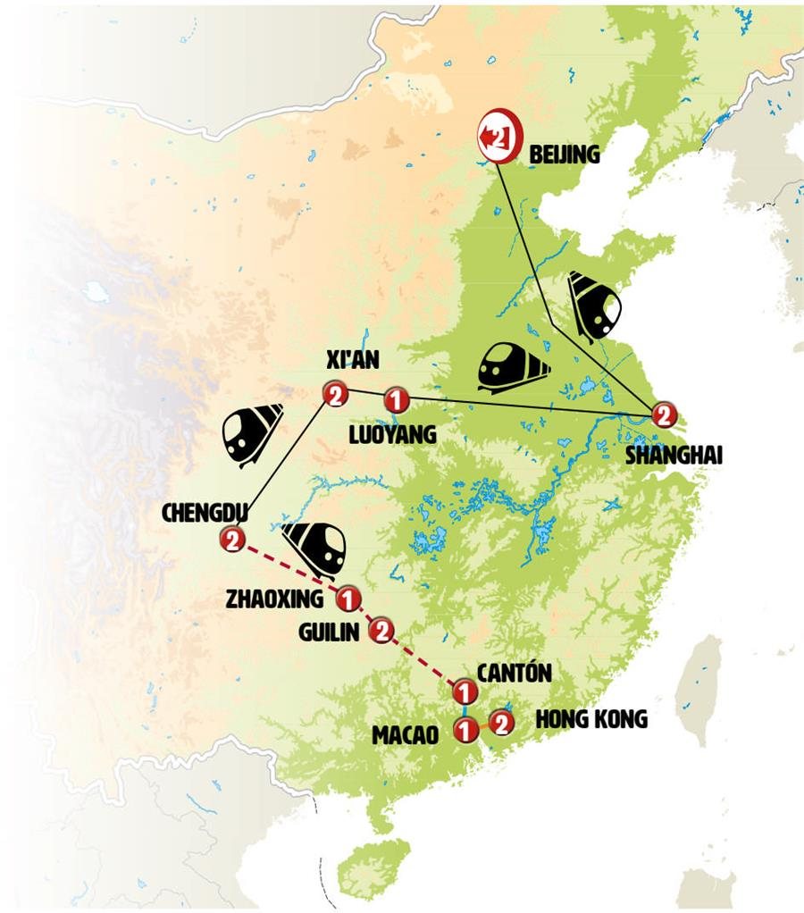 Canton, incluimos una visita de unas dos horas en esta pujante metrópolis del sur de China, pasearemos por la calle Shangiaxju con su mercado tradicional, conoceremos la Casa del clan Chen de finales del siglo XIX y recorreremos la zona ribereña del rio. Tiempo libre y almuerzo incluido. Fin de nuestros servicios. Verifique la hora de su vuelo para ver si necesitará una noche adicional. Traslado de salida al aeropuerto no incluido; nuestro guía le aconsejará sobre el mejor transporte público para su viaje.