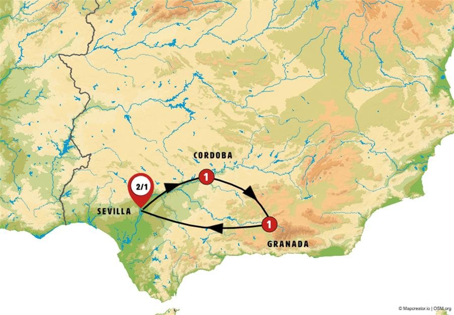 Después del desayuno, partiremos hacia CARMONA, una ciudad con más de 3.000 años de historia, conocida por su casco antiguo de estilo mudéjar y renacentista. Tras un paseo, continuaremos hacia ALMODÓVAR DEL RÍO, donde visitaremos su imponente castillo árabe (entrada y subida en taxis incluidas), que ofrece espectaculares vistas del valle del Guadalquivir.Seguiremos hacia CÓRDOBA, antigua capital del califato en la época islámica. Tiempo libre para pasear y almorzar. Posteriormente, realizaremos una visita con guía local a su impresionante Mezquita-Catedral (entrada incluida), una joya del arte islámico y cristiano. También recorreremos el encantador barrio judío, conocido por sus estrechas calles y sus patios llenos de flores, verdaderos símbolos de la ciudad.