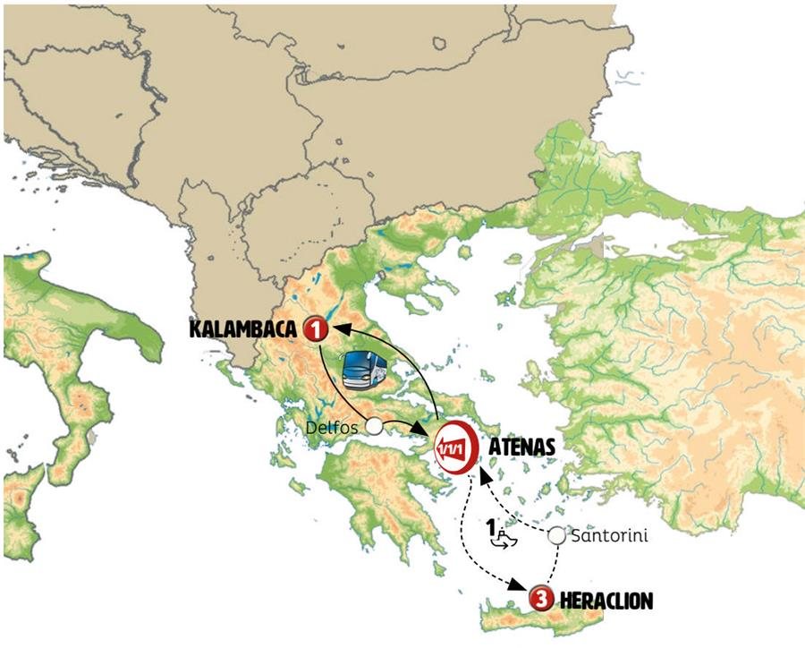Salimos al comienzo de la mañana hacia el norte de Grecia. Una parada en KAMENA VOURLA, bonito núcleo turístico junto al mar entre magníficos paisajes. Continuación hacia el norte. Realizamos una breve parada en el desfiladero donde se desarrolló la batalla de las Termópilas. Conocemos KASTRAKI, pintoresco pueblo con hermosas visas sobre todo el valle donde tendremos tiempo para almorzar antes de visitar el valle de LAS METEORAS, impresionante lugar declarado Patrimonio de la Humanidad por la UNESCO. Conoceremos todo el valle e incluimos la entrada a uno de los más famosos monasterios. Llegada a KALAMBAKA, cena incluida.