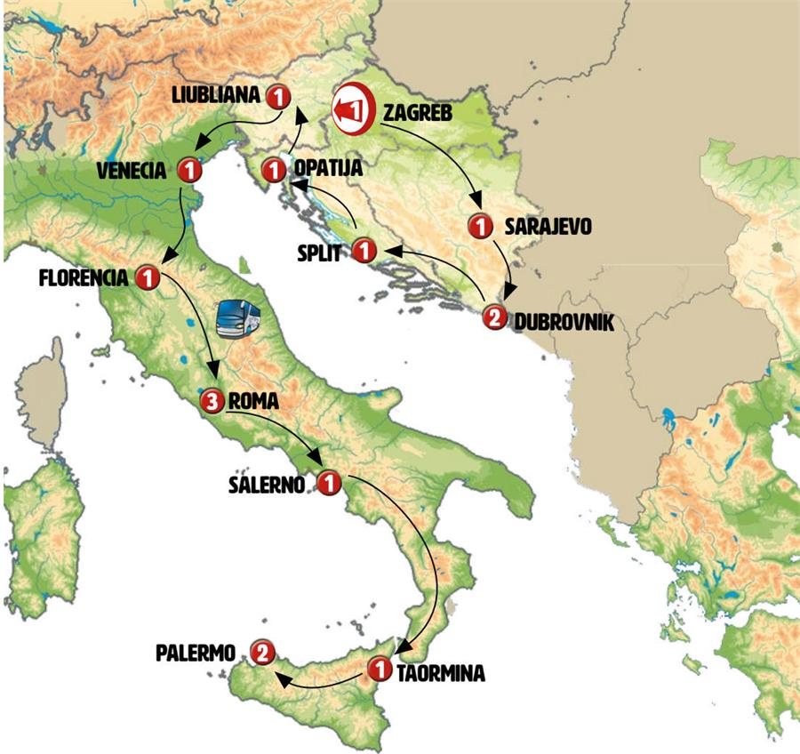 Mañana libre para pasear por el bonito centro de esta pequeña capital . Por la tarde viajamos hacia el mar Adriático. Paso a Italia. VENECIA, llegada al final de la tarde. Alojamiento en la zona de Mestre.