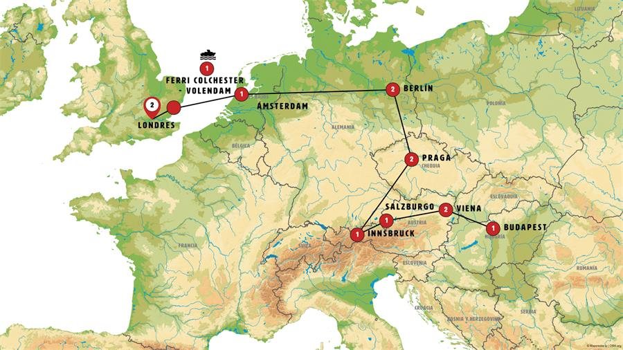 Por la mañana vamos al Museo Británico, uno de los principales y más antiguos museos del mundo, donde podremos ver las huellas de culturas de toda la tierra. Tiempo libre. A la hora del almuerzo daremos un traslado al barrio de CAMDEN, un distrito famoso por sus tiendas y mercados de sus calles en las que podremos ver objetos de culturas de todo el mundo y donde podrá almorzar en alguno de los múltiples pequeños restaurantes y puestos de comida de este popular barrio.Sobre las 16.00 saldremos hacia COLCHESTER, conocida como la más antigua ciudad de Inglaterra. Tiempo para pasear. Embarcamos posteriormente en Harwich en moderno ferry; travesía nocturna en camarotes con baño. Cena incluida.Nota importante: Debido a que el ferry utilizado tiene un número limitado de camarotes, en algunas ocasiones la etapa podrá sufrir modificaciones y se podrá ir desde Londres hasta Amsterdam bien en ferry diurno pernoctado en Amberes o bien en tren o avión a Amsterdam.