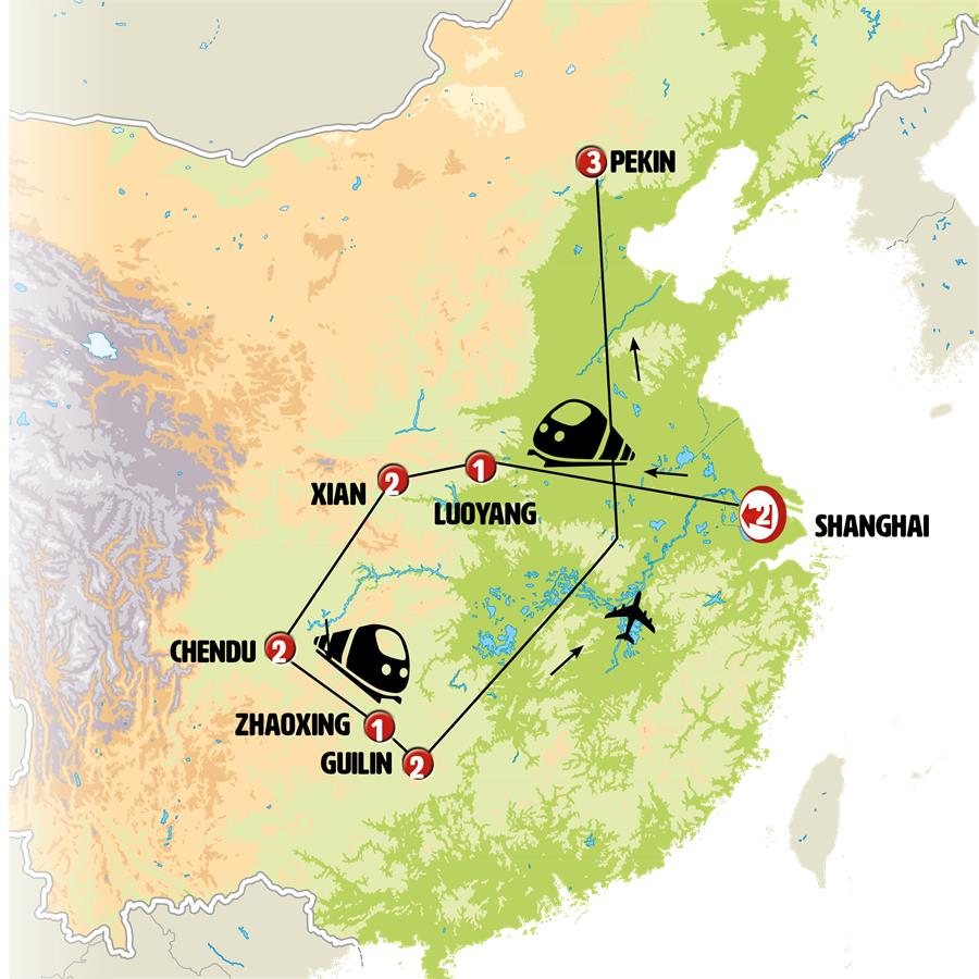 Hoy incluimos excursión de día completo en la provincia de Sichuan, de agradables paisajes y pueblos tradicionales. En DUJIANGYAN conocemos el tradicional sistema de irrigación, que lleva funcionando mas de 2000 años y es patrimonio de la humanidad. QUINGCHENG SHAN, la “montaña de la ciudad verde” es una montaña sagrada taoísta, sus senderos entre bosques, así como el lago que atravesaremos en ferry para tomar el teleférico, nos permitirá descubrir cuevas, pabellones y centenarios templos de madera. Almuerzo incluido. Finalmente visitaremos la ciudad antigua de JIEZI con sus callejones con mas de mil años de historia. Regreso a CHENGDU.