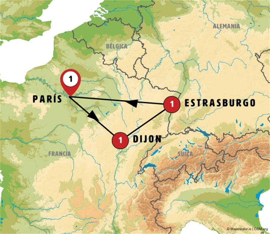 Todavía en la región de Borgoña paramos en BESANZON, ciudad de origen romano con bonito centro histórico y cuya ciudadela, del siglo XVII, domina la ciudad. Continuamos nuestra ruta hacia Alsacia, región francesa disputada a lo largo de los siglos entre Francia y Alemania, que mantiene un dialecto del alemán propio, “el alsaciano” y una arquitectura y tradiciones de gran arraigo germánico. Parada en COLMAR, ciudad con arquitectura única, con casas de madera de colores y canales que la atraviesan. Es conocida por su vino blanco y su gastronomía. Tendremos tiempo para almorzar y pasear con tranquilidad. Por la tarde conocemos uno de los más hermosos pueblos de Alsacia RIQUEWIHR, pueblo medieval con calles empedradas y casas de colores que parecen salir de un cuento de hadas y que inspiró escenas de la película de la Bella y la Bestia. Aprovecharemos para conocer una antigua bodega y hacer degustación de su vino con un dulce típico. ESTRASBURGO, llegada al final de la tarde. Sugerimos pasear por la zona de la catedral y la Petite France, lleno de lugares encantadores y pequeños restaurantes.