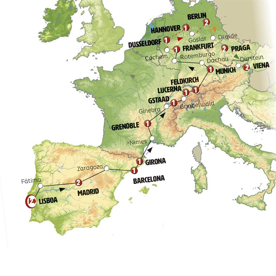 Salimos contorneando el lago de los Cuatro Cantones hacia EINSIEDELN, cuya inmensa abadía barroca es el principal punto de peregrinación en Suiza. Después, continuaremos hacia el este de Suiza, donde en HEIDIDORF conoceremos la Casa de Heidi (entrada no incluida), un pintoresco lugar entre hermosos paisajes, al cual accedemos por un sendero peatonal. Entraremos en el pequeño país independiente de Liechtenstein y, en su capital, VADUZ, a la sombra de su castillo, dispondréis de tiempo para pasear y almorzar. Posteriormente, nos dirigiremos a la cercana ciudad de FELDKIRCH, en Austria, junto a la frontera con Suiza, Liechtenstein y Alemania; una encantadora ciudad amurallada con un hermoso casco medieval y su castillo. Tiempo libre.