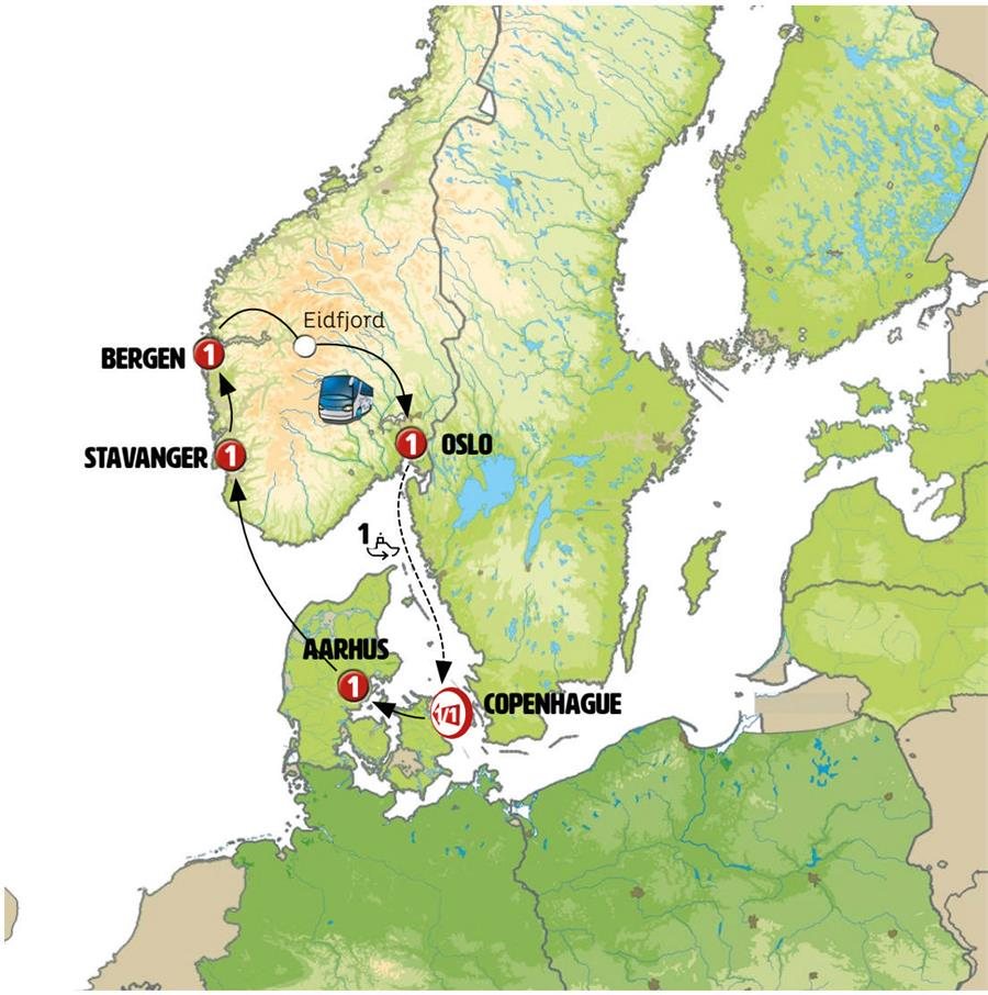 Viajamos hacia HIRTSHALS donde embarcamos en un ferry hacia Noruega atravesando el mar del norte. Travesía de casi tres horas hasta KRISTIANSAND. Seguimos la costa sur de Noruega, hermosos paisajes. Parada en la pintoresca pequeña población de FLEKKEFJORD. Llegada y tiempo libre en STAVANGER, hermosa ciudad con su puerto activo junto al fiordo.Nota: los horarios de los ferrys son variables según los meses. Normalmente se prevé tiempo para almorzar en el barco.