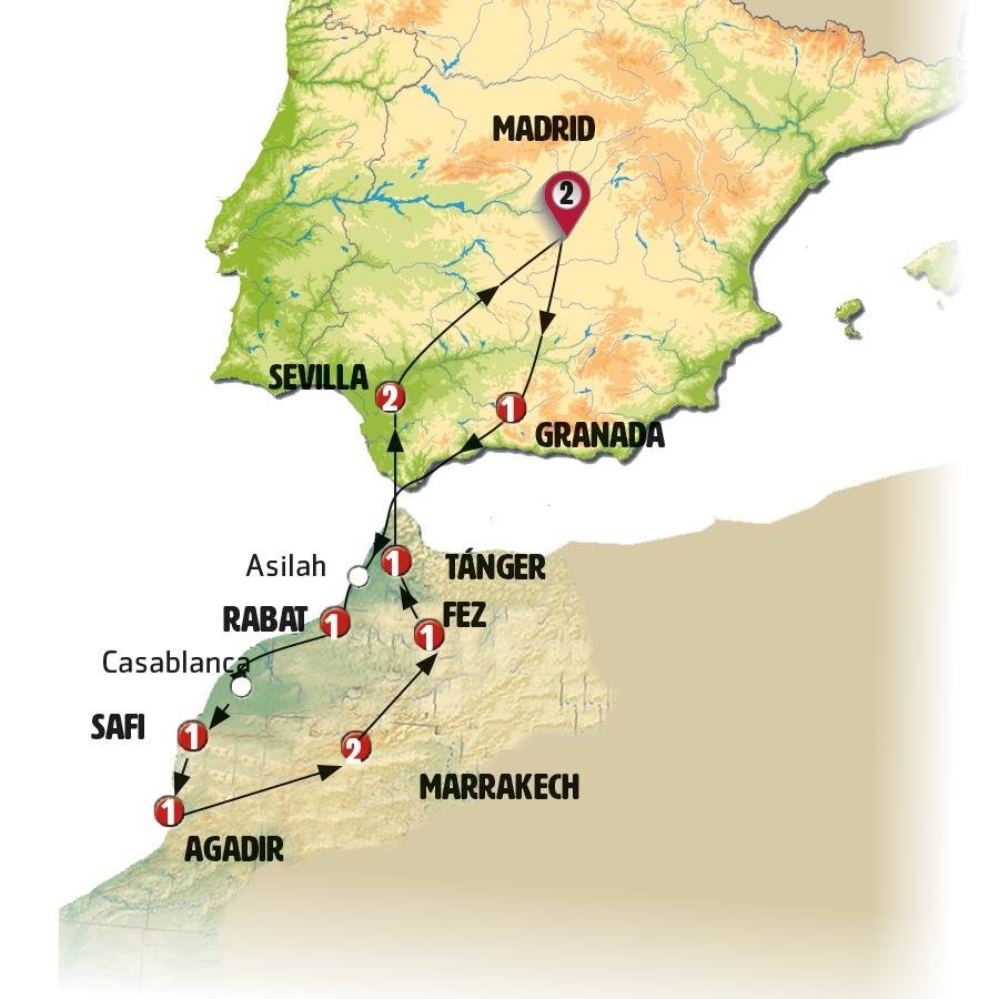 Salida de Granada. Atravesamos la Costa del Sol. En Algeciras o Tarifa embarcamos en moderno ferry cruzando el Estrecho de Gibraltar (ticket incluido). Normalmente el autocar no será embarcado debiendo llevar cada pasajero su equipaje. Llegada a Marruecos. Bonitos paisajes. ASILAH.- Pintoresca pequeña ciudad amurallada frente al Atlántico, fue un antiguo puerto de piratas, hoy la población tiene mucha vida. Tiempo para almorzar. Seguimos posteriormente hacia RABAT, llegada. Cena incluida.