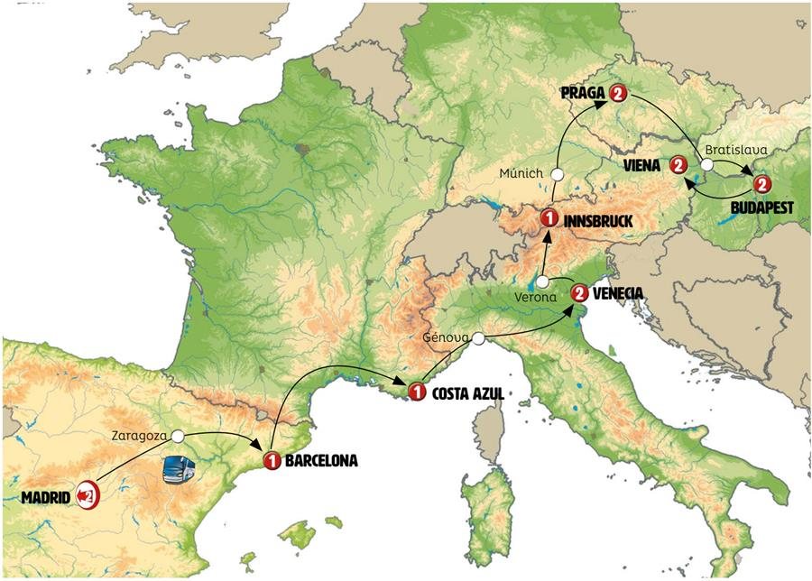Paradas en Ruta: este circuito admite la posibilidad de que usted pueda programar una o más paradas en su viaje, en la ciudad que desee por período de 1, 3, 4 o 7 noches según circuito y fechas de salida. Es fundamental que el circuito tenga salida posterior a la fecha escogida y permita la salida deseada. El suplemento por parada efectuada es de 40 Euros/52 Dólares por persona. Si la parada se realiza para tomar otro circuito del mismo proveedor no se abonará este suplemento.