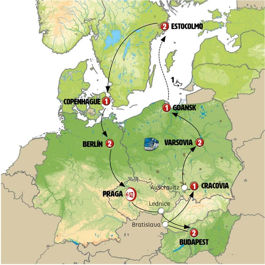 Mañana libre en Copenhague. Tras ello saldremos hacia el sur de Dinamarca. En GEDSER tomamos ferry, travesía de unas dos horas hacia Alemania. Llegada a Rostock y continuación a BERLÍN, llegada al final del día.Nota: en caso de que el número de pasajeros realizando el trayecto Copenhague/Berlín sea muy limitado, este podrá realizarse en línea regular de viajeros sin modificarse el contenido de la etapa.