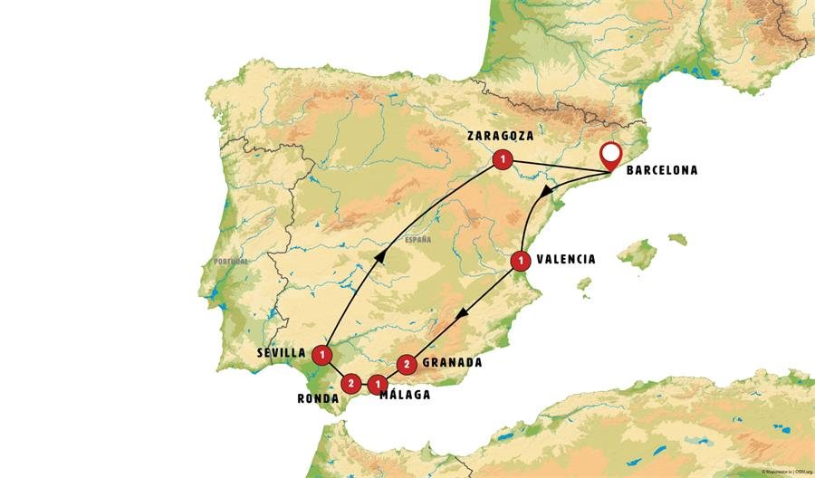 Por la mañana incluimos en ZARAGOZA visita panorámica con guía local; durante la visita conocemos la Basílica del Pilar, la Catedral; hablaremos del pintor Goya conociendo algunas de sus obras, veremos también un teatro romano, un palacio renacentista y pasaremos por delante del palacio árabe de la Aljafería. Tras la hora del almuerzo seguimos hacia Cataluña. Parada en el Monasterio de Poblet, rodeado de sus murallas, en un hermoso paraje es uno de los monasterios medievales mejor conservados del mundo (entrada incluida). Continuación a BARCELONA, llegada al final de la tarde.Fin de nuestros servicios con el deseo de haber brindado una experiencia inolvidable. Compruebe la hora de su vuelo por si necesitase una noche adicional.