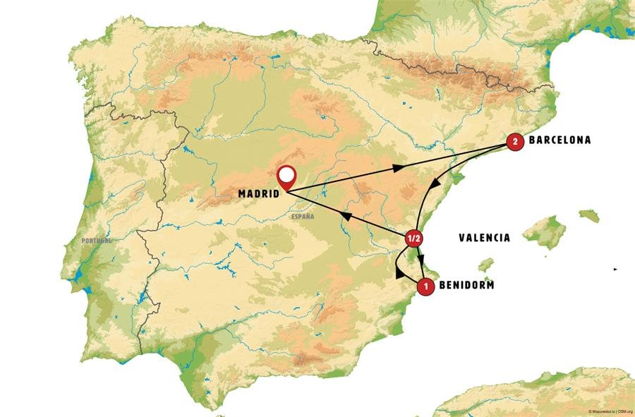 Viajamos hacia el sur siguiendo el Mediterráneo. Una parada en PEÑISCOLA, pequeña ciudad medieval amurallada rodeada por hermosas playas. Tiempo para un paseo. Seguimos a VALENCIA donde llegaremos a la hora del almuerzo. Por la tarde efectuamos una visita con guía local de esta ciudad portuaria de la costa levantina, con más de 2000 años de historia que salpican su trazado urbanístico de monumentos de todas las épocas que contrastan con la vanguardia arquitectónica de edificios como el de la Ciudad de las Artes y las Ciencias. Cena típica de gastronomía local incluida.