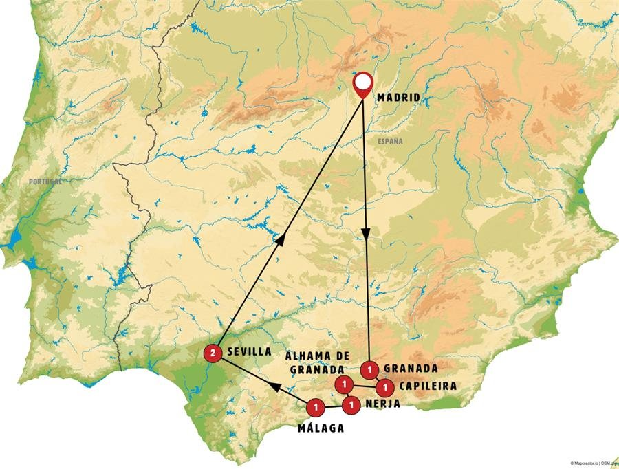 ¡Bienvenidos a su circuito de Europamundo!Salida de Madrid al comienzo de la mañana. Viajamos hacia el sur atravesando La Mancha, con parada en PUERTO LÁPICE, un pueblo manchego que evoca a Don Quijote. Entraremos por Despeñaperros en Andalucía. GRANADA, llegada. Almuerzo incluido. Por la tarde, si usted adquirió el viaje con visita a la Alhambra incluida, visitaremos con guía local el inmenso Palacio de la Alhambra y sus bellos jardines del Generalife, construidos en época árabe.NOTA MUY IMPORTANTE: El número de personas autorizados a visitar la Alhambra se encuentra limitado por ley. Para garantizar la entrada, en el momento de confirmar la reserva del circuito se procederá a su emisión. Para ello es necesario disponer los datos personales correctos del cliente (nombre completo y número de pasaporte/ dni. Al no tener posibilidad de anulación, en caso de cancelación de la reserva, los gastos de esta entrada serán repercutidos al cliente. En limitadísimas ocasiones puede ocurrir que la reserva nos sea anulada en cuyo caso se visitará el Real Alcázar de Sevilla de características similares.