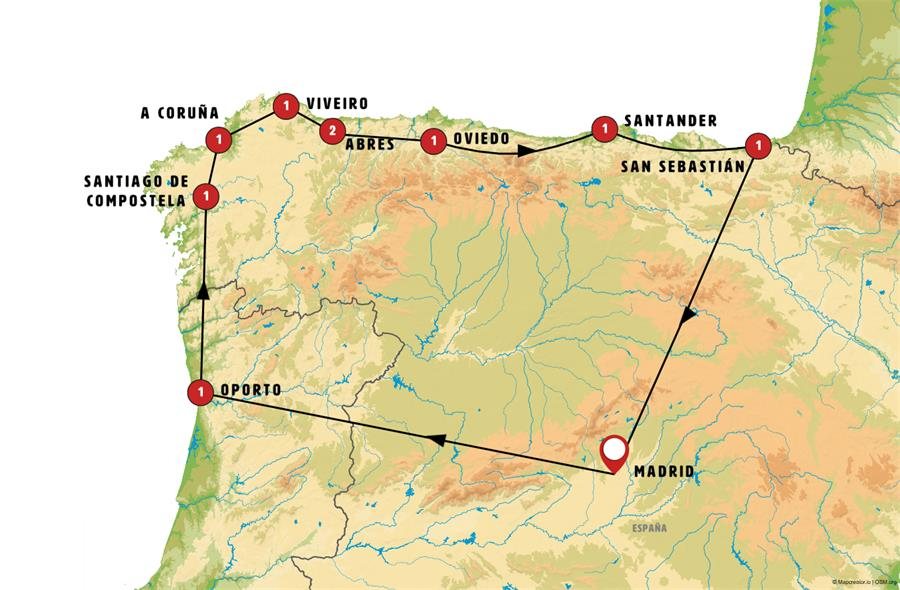 Por la mañana, tras admirar las bellas vistas sobre la bahía de San Sebastián desde el Monte Igueldo nos dirigiremos al Museo de la Sidra Vasca (entrada y degustación incluida) para conocer las costumbres y la elaboración de esta popular bebida. Tiempo libre posteriormente para disfrutar de la gran playa de la ciudad, pasear por sus bulevares o por su Parte Vieja. Incluiremos una experiencia de deliciosos pintxos, tan típicos en la gastronomía vasca, con bebida. A comienzo de la tarde, en un autopista con paisajes de gran belleza viajamos hacia Castilla. BURGOS, un tiempo en el centro histórico, donde destaca la Catedral de Burgos, joya de estilo gótico. Seguimos a MADRID, llegada al final del día.Fin de nuestros servicios con el deseo de haber brindado una experiencia inolvidable. Compruebe la hora de su vuelo por si necesitase una noche adicional.