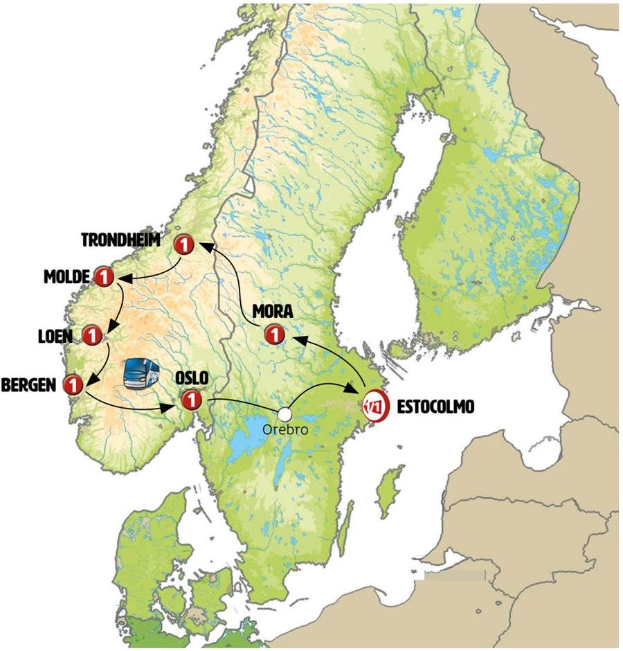 Incluimos una visita panorámica con guía local de la capital Noruega. Esta ciudad une su vibrante arquitectura moderna con sus edificios clásicos, un magnífico entorno paisajístico y grandes parques con esculturas. Oslo ha sido nominada la “capital verde europea”. Tras la visita, tiempo libre. Salida hacia Suecia. Paisajes de bosques y lagos. Parada en OREBRO, histórica ciudad junto a un hermoso lago con castillo y bonito centro histórico. ESTOCOLMO, llegada al final del día a la capital de Suecia, hermosa ciudad en el archipiélgao del mar Báltico conectadas entre sí por numerosos puentes y transbordadores y conocida por su rica historia, impresionante arquitectura y su combinación de modernidad y tradición.