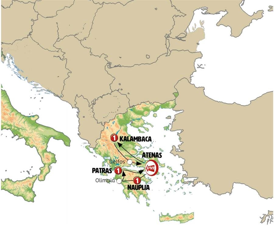Viajamos entre montañas por el interior del Peloponeso hacia TRIPOLI. Parada en la activa capital de la región de Arcadia, con tiempo para pasear por la zona de la Plaza Areos con sus cafés y restaurantes. Continuamos ruta hacia OLIMPIA, conoceremos el recinto arqueológico (entrada y visita con guía local incluida), el lugar donde se celebraron los primeros juegos Olímpicos en el año 776 a.C., participando atletas de toda Grecia y sus colonias. Destaca el Templo de Zeus, el estadio, el gimnasio y la palestra. Continuamos hacia PATRAS, la tercera ciudad de Grecia en población, ciudad portuaria con mucha vida, una fortaleza medieval domina la ciudad, su catedral es la mayor iglesia de Grecia, junto a ella la pequeña iglesia de San Andres es lugar de peregrinación. Cena incluida.