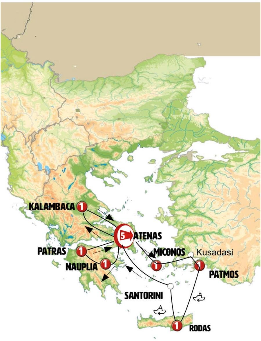 06.30 hrs.- Puerto de Lavrio. Llegada al Puerto y fin de nuestros servicios.Nota: Si usted está llegando en el ferry desde la isla de Rodas, su puerto de llegada será El Pireo. Nota: Caso de solicitar noches adicionales en Atenas, el traslado del puerto al hotel no está incluido y se facturará.