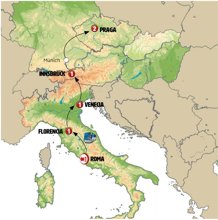 Paradas en Ruta: este circuito admite la posibilidad de que usted pueda programar una o más paradas en su viaje, en la ciudad que desee por período de 1, 3, 4 o 7 noches según circuito y fechas de salida. Es fundamental que el circuito tenga salida posterior a la fecha escogida y permita la salida deseada. El suplemento por parada efectuada es de 40 Euros/52 Dólares por persona. Si la parada se realiza para tomar otro circuito del mismo proveedor no se abonará este suplemento.
