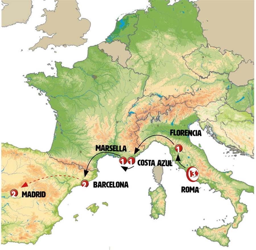 Salida de Florencia hacia PISA, tiempo para admirar su conjunto artístico donde se encuentra la famosa torre inclinada. La etapa que seguimos a continuación es de extraordinaria belleza paisajística siguiendo la Riviera Italiana. Llegada a SESTRI LEVANTE, encantadora pequeña ciudad turística junto al mar. Tiempo para almorzar y pasear. Continuación hacia la Costa Azul francesa. Llegada a media tarde a MONTECARLO, podrá conocer su histórico casino. Continuación a la NIZA. Llegada sobre las 20.00hrs.