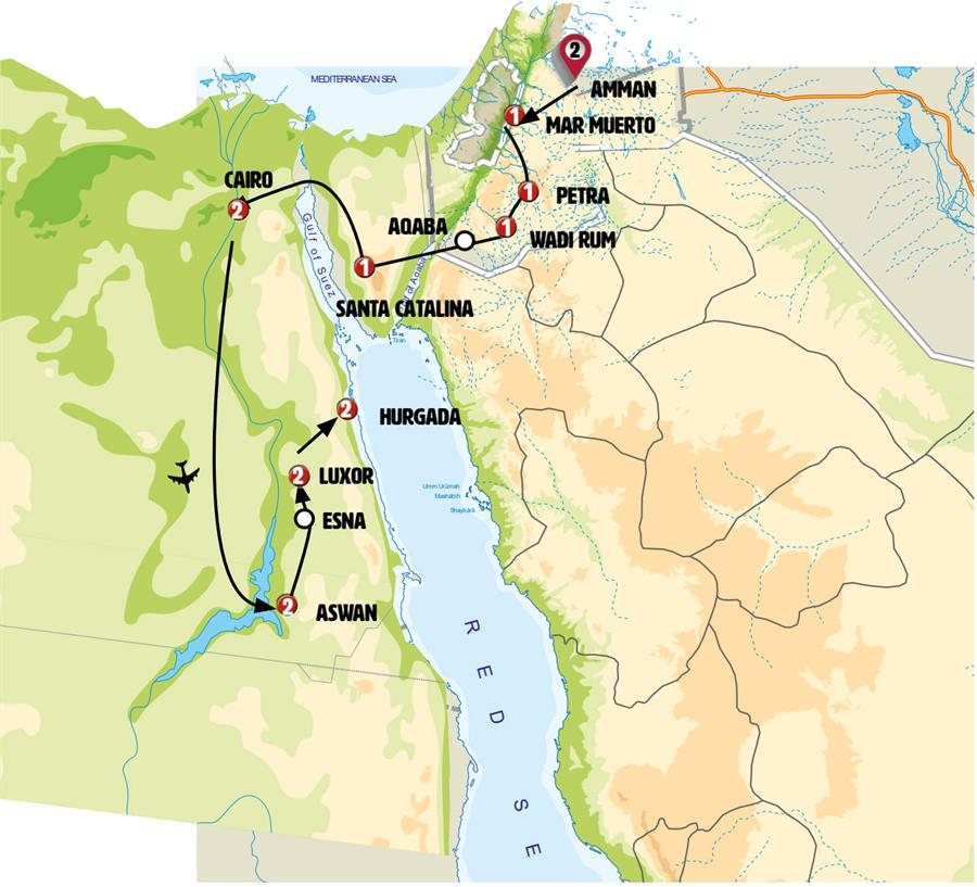 Tras el desayuno salimos a AQABA, la segunda ciudad Jordana, a orillas del Mar Rojo. Un paseo por el centro antes de seguir hacia la frontera de ISRAEL, EILAT, llegada a esta moderna y turística ciudad con sus excelentes playas. Un tiempo de relax para almorzar y pasear ¿se anima a bañarse? Antes de continuar hacia la frontera de EGIPTO. Paso al Sinai, en nuestra ruta fotografiamos la isla del faraón con la potente fortaleza de Saladino. Continuación hacia SANTA CATALINA. Llegada, cena incluida y alojamiento.NOTA: En el paso entre Jordania a Israel y de Israel a Egipto deben abonarse, por parte del viajero, unas tasas de entrada/salida en los diferentes países. Jordania: 15 $ (tasas de salida), Israel: 32 $ (tasa de salida), Egipto: Tasas de entrada a Taba: 25$, Visado de entrada: 45 $ (que en realidad son 25$ de visado + 20$ gastos de tramitación). Tasas aproximadas y sujetas a cambio sin previo aviso por las autoridades del país.Están prohibidos los drones y las cámaras con zoom de 5,5 metros así como otro tipo de cámaras de equipos profesionales ( Europamundo no se responsabiliza de los objetos que puedan ser requisados en las fronteras por parte de las autoridades de los países )NOTA IMPORTANTE: Debido a circunstancias excepcionales o a un número reducido de participantes, puede ocurrir que crucemos directamente de Jordania a Egipto en barco, tomando el FERRY AQABA- TABA con una duración de algo más de dos horas. Durante la travesía en ferry, no habrá asistencia de ningún guía.