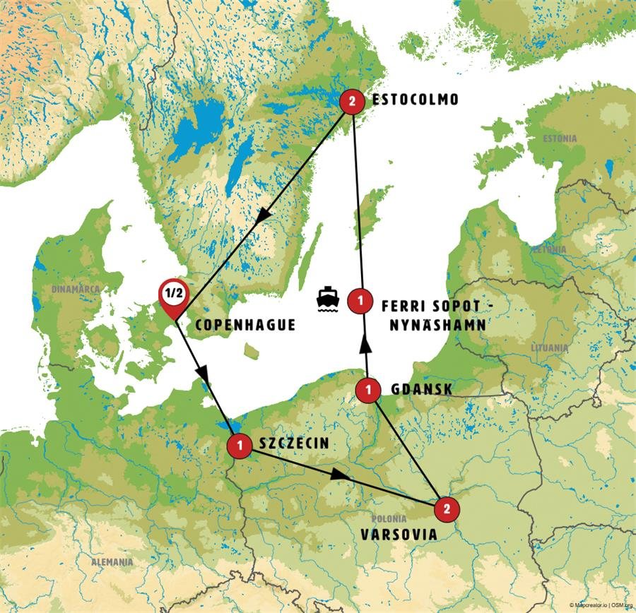 Tras el desayuno salimos hacia GEDSER, pequeña población, la que se encuentra más al sur de Escandinavia. En este punto, sobre las 11 hrs, embarcamos en moderno ferry que nos lleva hacia Alemania. Travesía de dos horas atravesando el mar Báltico, sugerimos almorzar en el barco. ROSTOCK, llegada y tiempo para pasear en esta ciudad, el mayor puerto alemán del báltico. Su casco antiguo tiene mucha vida destacando la plaza del mercado, el ayuntamiento y la iglesia Gocia de Santa Maria. Continuamos nuestra ruta hacia Polonia a través de la región de Pomerania. SZCZECIN, llegada al final de la tarde a esta histórica ciudad universitaria a orillas del Oder que cuenta con un agradable centro histórico, destacando el castillo de los príncipes de Pomerania y las terrazas junto al rio. Tiempo libre para pasear.