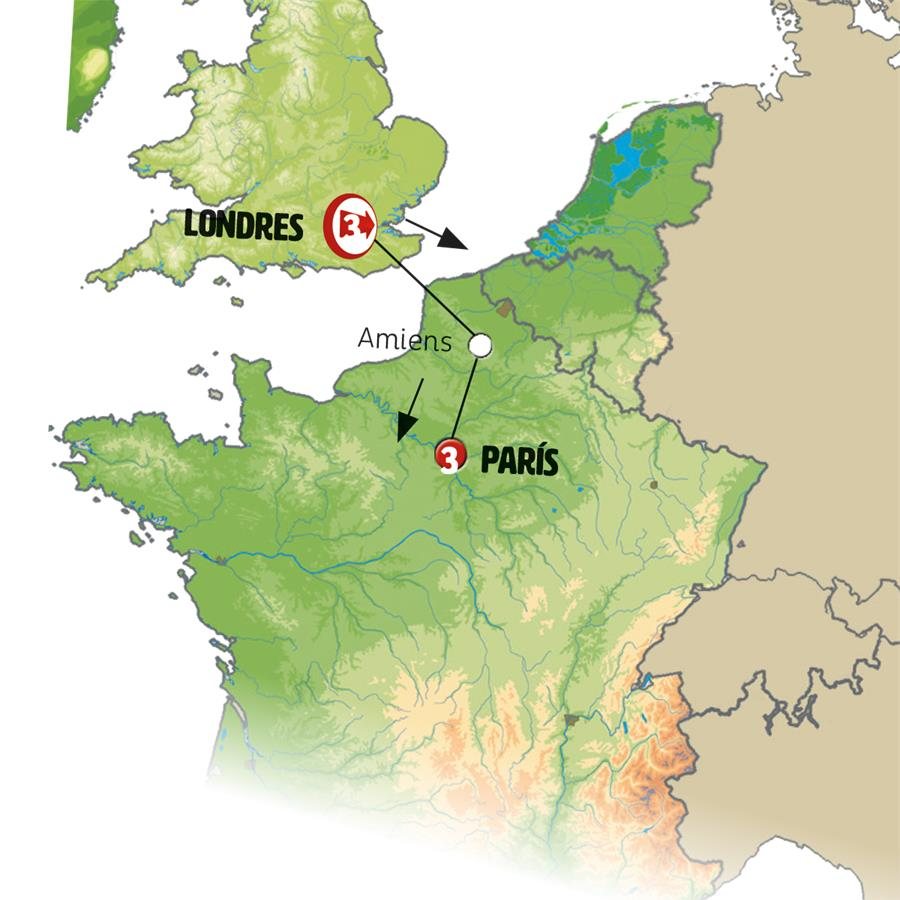 Saldremos de LONDRES hacia el continente. Travesía en ferry hacia FRANCIA y tras una parada técnica en Calais, continuamos a AMIENS, conocida por su catedral gótica. Podrá pasear por sus estrechas calles llenas de vida, conocer los jardines flotantes y ver la casa donde vivió Julio Verne. Tras ello continuamos a PARIS. Llegada al final del día.