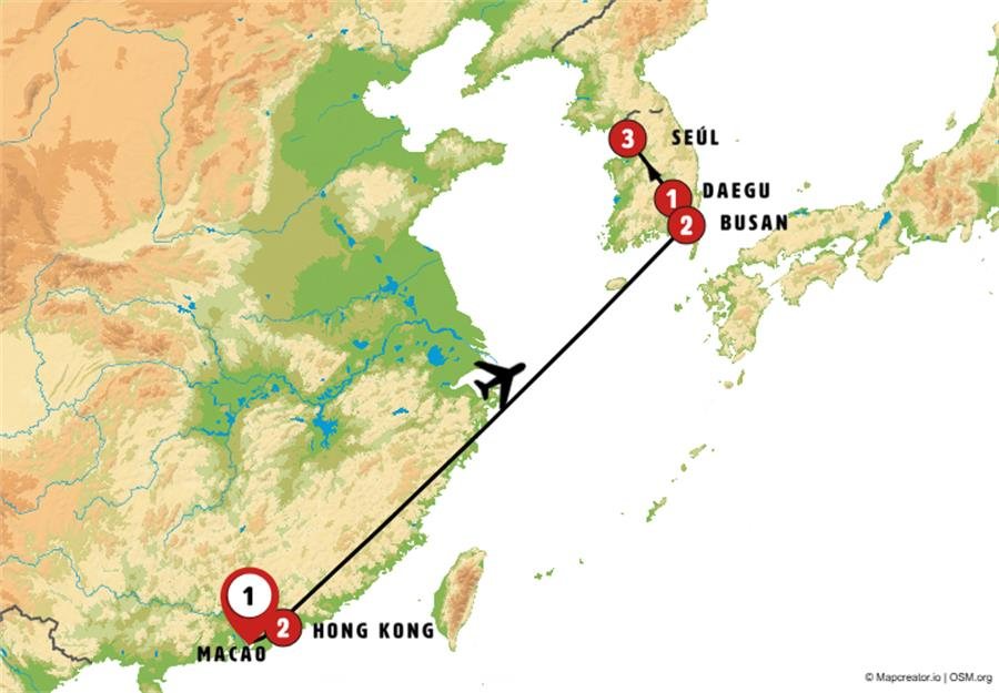MACAO. Incluimos visita de la ciudad, el centro histórico ha sido declarado Patrimonio de la humanidad, fue administrado por los portugueses desde el siglo XVI hasta 1999, sus antiguas iglesias, los azulejos en los edificios civiles, su fortaleza y el faro mas antiguo de China lo atestiguan. Tiempo libre y Almuerzo incluido. Por la tarde tomamos el impresionante puente que comunica Hong Kong con Macao, inaugurado a final del 2018, proeza de ingeniería con mas de 30 kilómetros de puentes sobre el mar de China, 6 kilómetros de túnel bajo el mar, islas artificiales.Nota: Si el numero de participantes en el grupo es menor a 06 personas el paso de Macao a Hong Kong podrá realizarse en ferry. HONG KONG – Llegada-. Tras el alojamiento tomaremos el Star ferry para cruzar la bahía. Daremos un breve paseo para ver los edificios iluminados desde la otra orilla. Regreso al área de nuestro hotel. Cena incluida. Alojamiento.