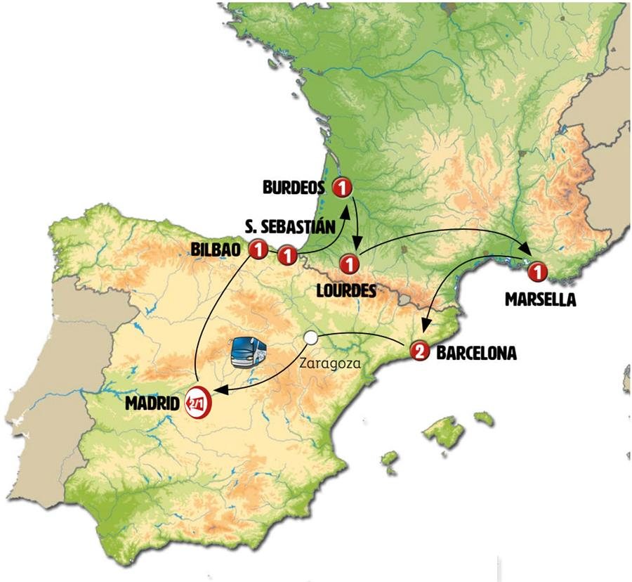 En la etapa de hoy descubrimos la Provenza. En AIX EN PROVENCE nació el pintor Paul Cezanne, tiempo para pasear en su magnífico centro histórico con sus pequeñas calles, fuentes y plazas pintorescas. Continuamos a AVIGNON, Un tiempo para caminar y almorzar en esta ciudad amurallada a orillas del Ródano que fue sede de los papas católicos, convirtiéndose en la segunda Roma, hasta que en 1791 se integró a Francia. Su inmenso Palacio de los Papas nos desvela su pasado. Continuamos a PONT DU GARD, entrada incluida, al impresionante acueducto romano, Patrimonio Mundial de la UNESCO, uno de los monumentos romanos más famosos y mejor conservados del mundo. Seguimos nuestra ruta hacia Cataluña. BARCELONA, llegada al final del día.