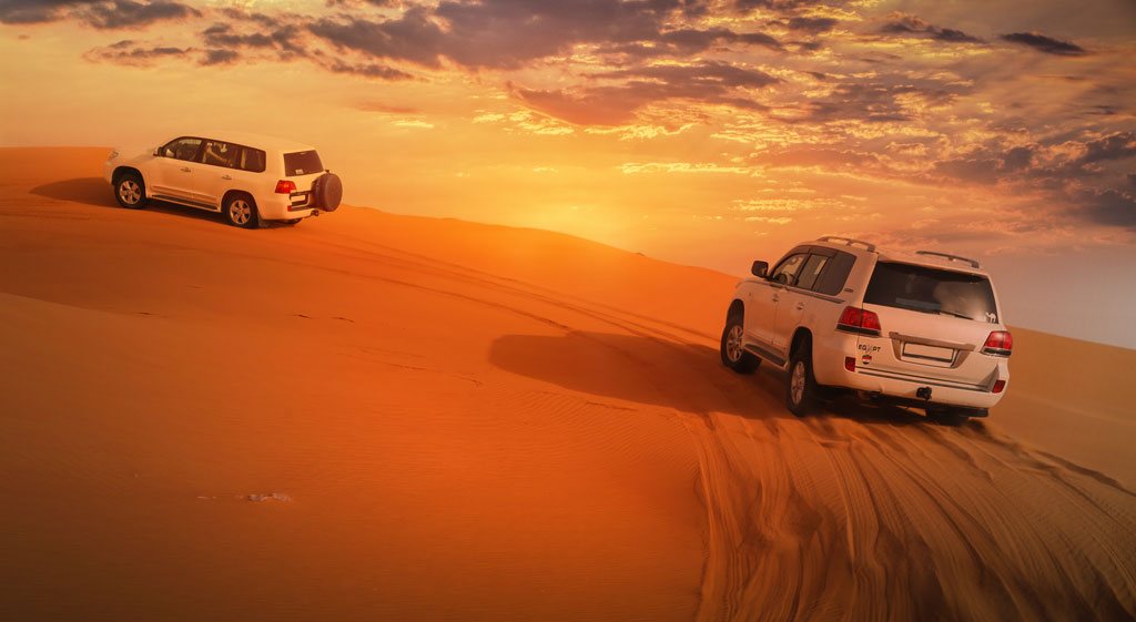 Desayuno. Pick up en el hotel a la hora programada para tomar un vehículo Land Cruiser y seguir hacia el sur de Qatar. Déjate llevar por la emoción mientras nuestro conductor te lleva a través de la actividad de dune bashing.Disfuta de las impresionantes vistas del desierto, cuando el cielo se tiñe de tonos naranjas, rosados y morados, creando un brillo dorado sobre el desierto.Al finalizar,regreso al hotel.