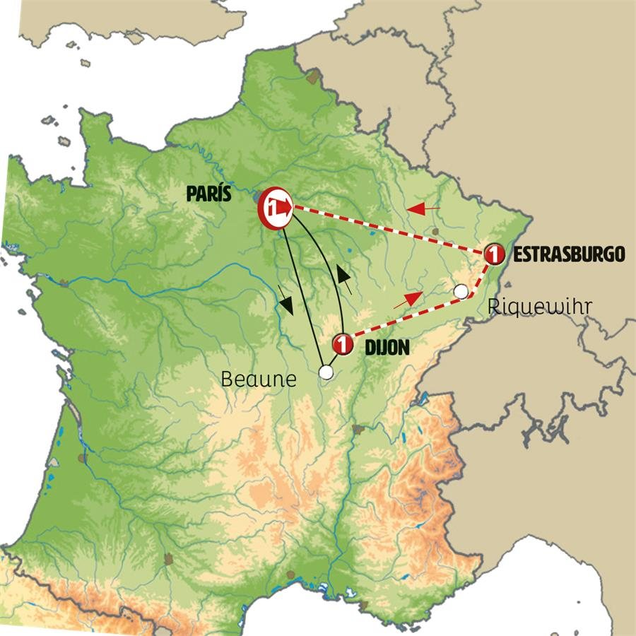 ¡Bienvenidos a su circuito de Europamundo!Salimos hacia el este de Francia, agradables paisajes viajando hacia Borgoña. Realizamos una breve parada en NOYERS SUR SEREIN, considerado uno de los pueblos mas bonitos de Francia, de calles estrechas con casas de piedra y entramado de madera, encantadora plaza central y muralla. Continuamos nuestra ruta hacia BEAUNE, capital de los vinos de Borgoña. Tiempo para almorzar y pasear, sugerimos conocer su Histórico Hospicio, hospital medieval del siglo XV para personas sin recursos. Tras ello seguimos a DIJON, capital de la región, animadas calles, magnífico conjunto urbano con sus numerosos edificios medievales y renacentistas, destacando el Palacio de los Duques. Alojamiento.